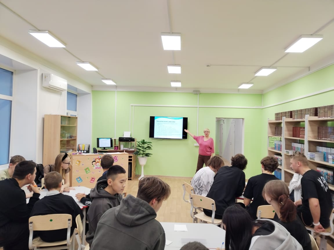 В рамках "Недели словесности" школьная библиотека распахнула свои двери для увлекательного интеллектуального часа под названием "Лексика", которое подготовили учитель русского языка и литературы, Соя Е.В. и педагог-библиотекарь, Стрелкова Р. В. Это событие, призванное расширить кругозор и углубить понимание богатства русского языка, собрало учеников 8-11 классов.